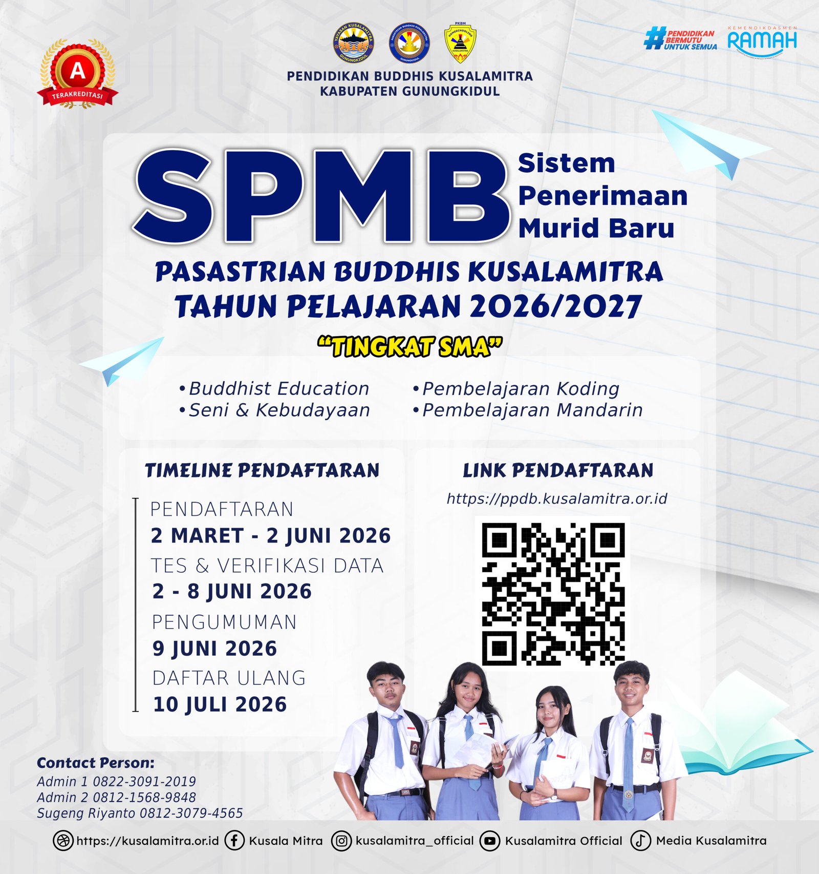Pendaftaran Online tanggal 2 Maret – 2 Juni 2026, Ayo segera daftarkan diri anda dan pastikan anda akan mendapatkan pendidikan yang unggul dan berkualitas disini.